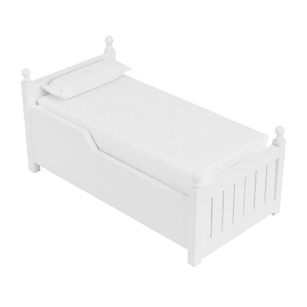 Miniature Wooden Bed with Drawer, European Style Dollhouse Bedroom Furniture Decoration for Doll House Accessories