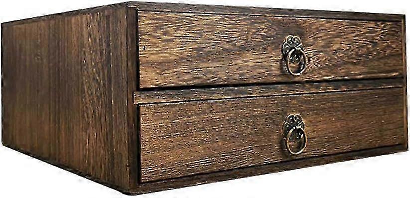 Small Wooden Storage Box with Drawers 2- Layer Shallow Type Drawers Wood Desktop Storage Cabinet Small Wooden Box Organizer for Office Supplies, Sewin
