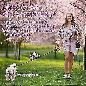 Great for Small and Medium Dogs: The dog leash is suitable for medium dogs weighing up to 33 lbs. Small Dog Portable Lightweight Leash for Women and Girls Walking with Dog; Reflective & 360 Tangle-Free: Durable dog leash embedded in strong nylon material. The highly reflective nylon leash adds safety and visibility to dogs and their owners early in the morning or late at night. 360 tangle-free design, easier and smoother to retract; EASY E: The small dog leash features quick lock and unlock buttons, easy to roll and roll with just your thumb. Tangle-free, great for walking, jogging, running, camping and hiking, or a leisurely stroll in the backyard; Comfortable Handle: Ergonomic TPE non-slip handle retractable dog leash is easy to grip and safe, providing your pet with a pleasant walking experience, don't worry about the dog leash hurting your hands; Safe and Durable: The retractable dog leash is made of durable anti-rust swivel hook and stable impact-resistant ABS material, the top durable internal coil spring can be continuously retracted for years.