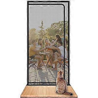 強制猫用スクリーンドア、ジッパー付きヘビーデューティーペットプルーフスクリーンドア、犬の猫が家から逃げ出すのを防ぎます、白(ドアサイズ90x210cmに適合)