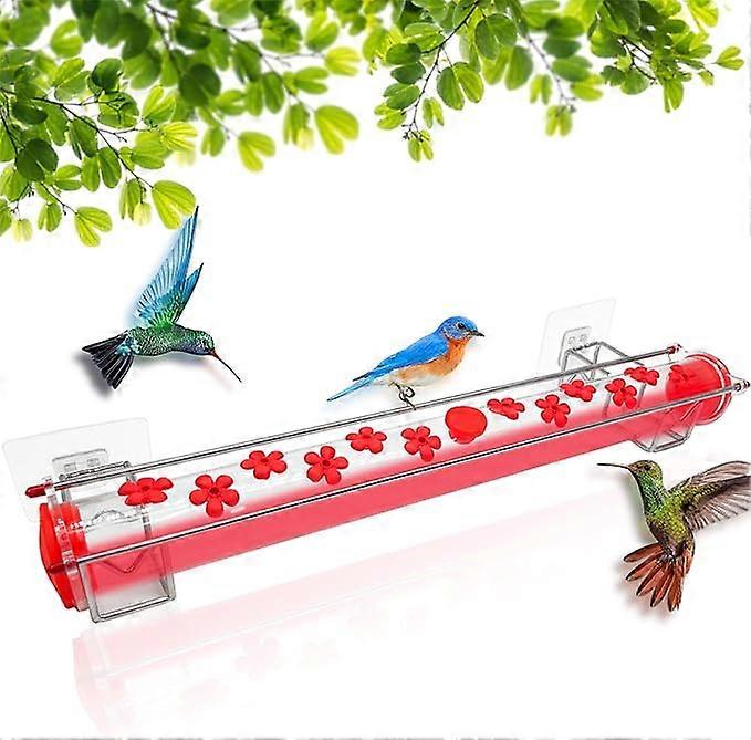 Window Hummingbird Feeder with Strong Suction Cups- Horizontal Humming Bird Feeders with 16 Feeding Ports for Outdoor Window Mount