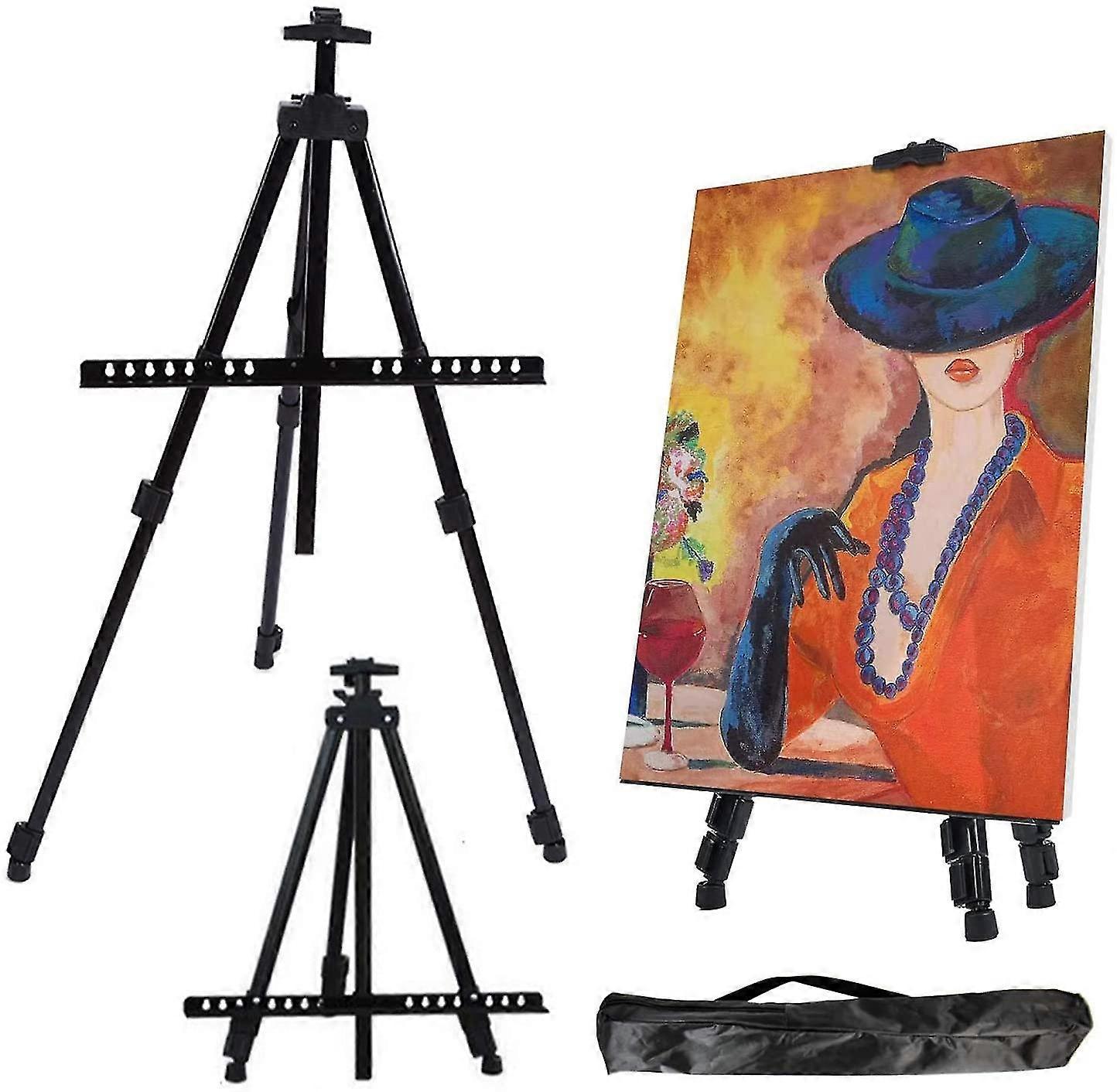 Reinforced Artist Easel, Extra Thick Aluminum Display Easel For 20"-61" Tripod Height Adjustable With Portable Bag For Floor/tabletop Drawing And Disp