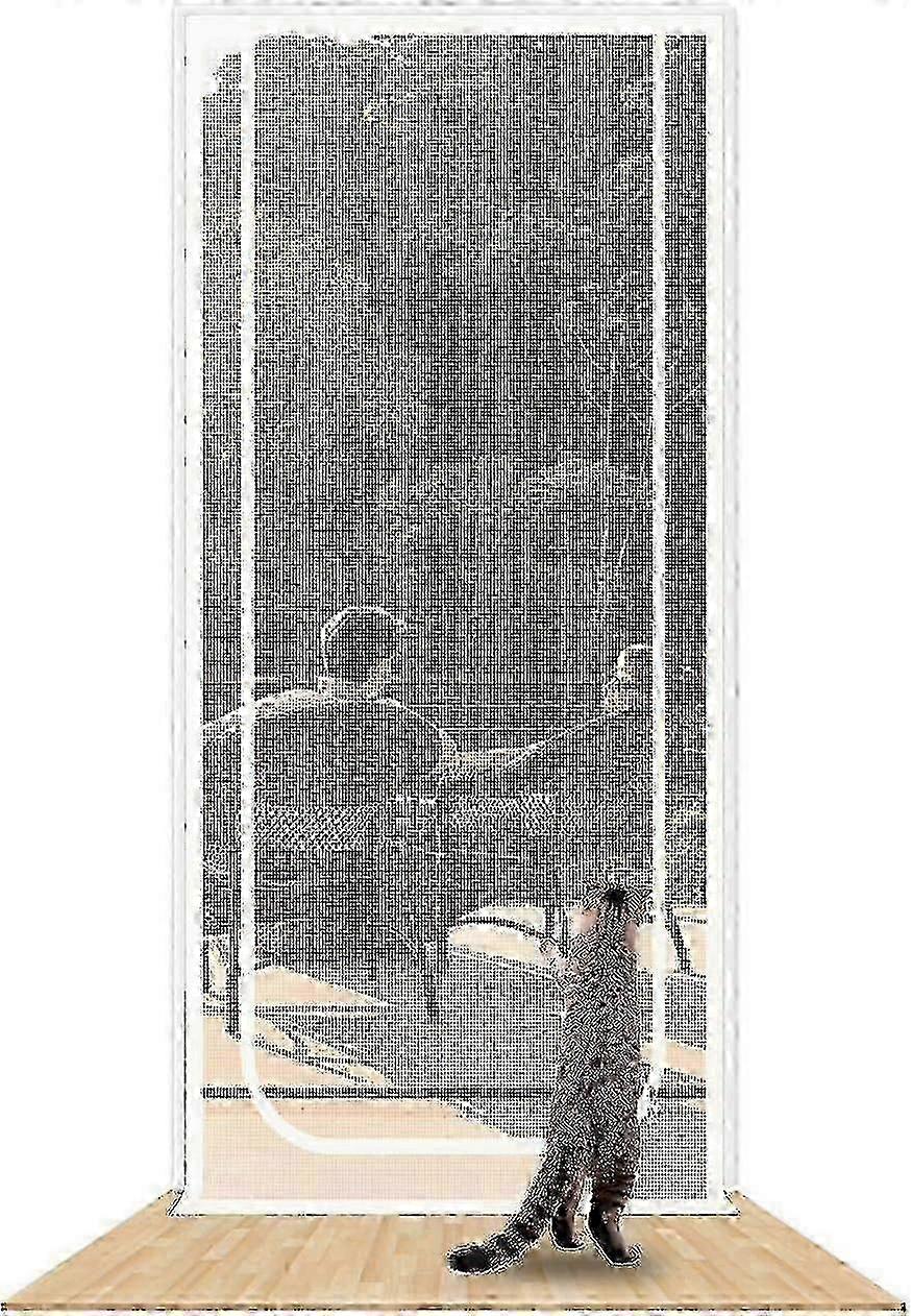Reinforced Cat Screen Door Heavy Duty Pet-Proof Screen with Zipper White Prevents Pets from Running Out