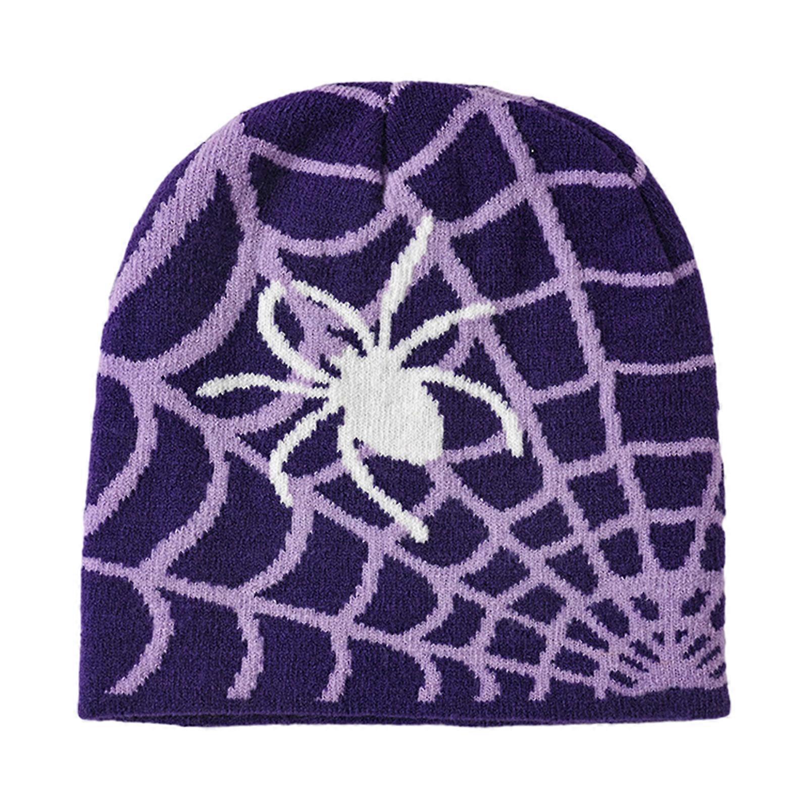 Elastic Windproof Beanies Knitted Jacquard Spiderweb Pattern Hat for Women Men Keep Ear Warm Hat Cold Weather Supplies Purple