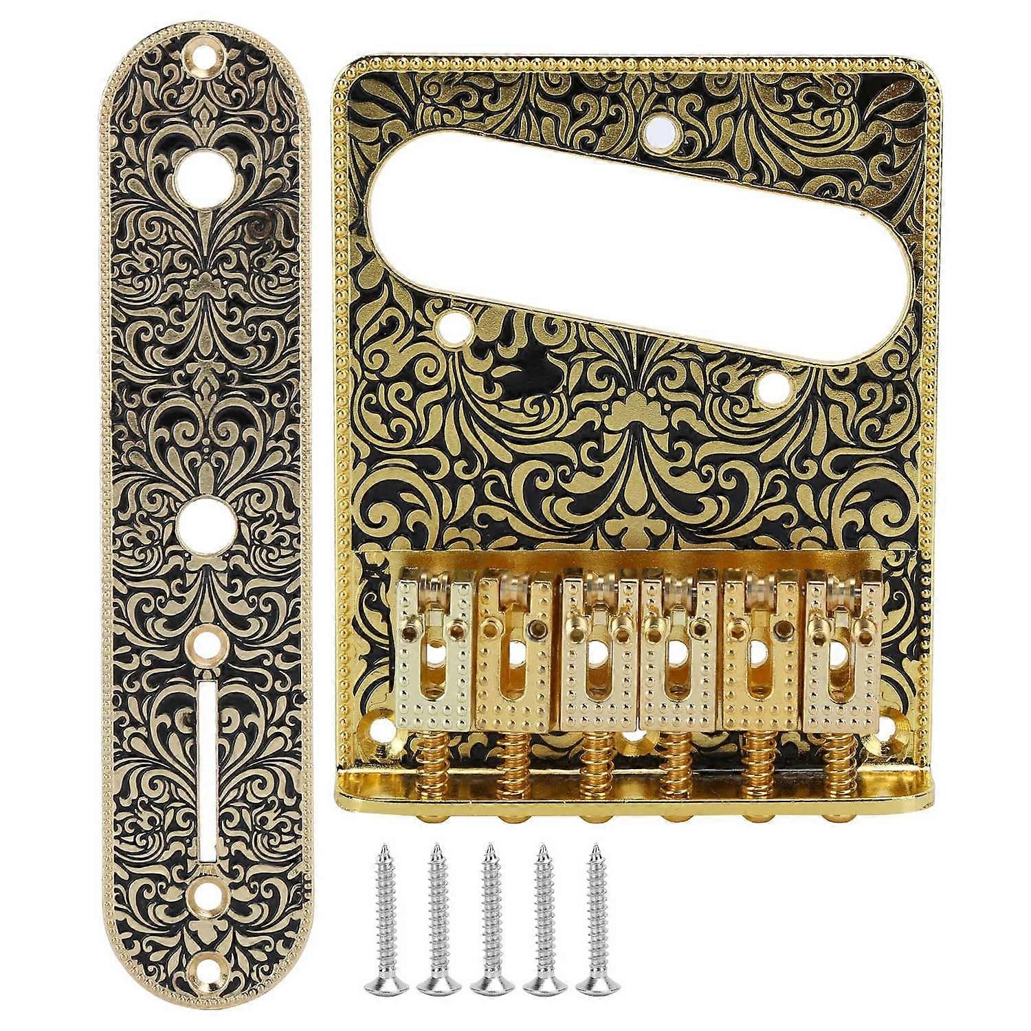 Carved Pattern Electric Guitar Bridge 6 Saddles Tailpiece Electric Guitar AccessoriesGold