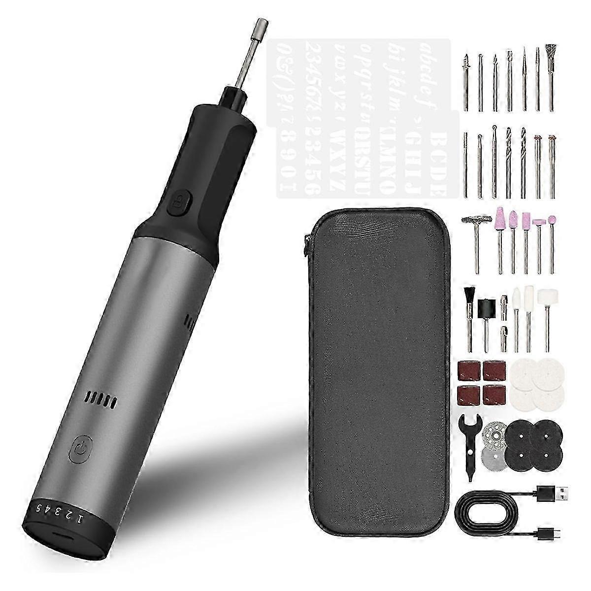 sculpture tool provides powerful torque output and high -speed rotation, which is very suitable for carving, polishing, drilling, carving.This sculptor is equipped with a set of 44 different accessories to meet all your , from sculpture and polishing to cutting. Easily switch 5 speed options so that you can customize your grinding speed to adapt to any items.The sculptor is suitable for beginners and can easily control all skills.Whether you need precise low -speed carvings or fast -speed work, this rotation tool can meet different needs in various scenarios Made of 6 series of aluminum alloy. The sculptor has two inlet holes and 3 surrounding heat pores to excellent heat management and conductivity.The carving pen is used in metal wood glass and plastic, holding carved tools for DIY handicrafts Metal carving pen adopts wireless human engineering design, which is easy to use.Its 1100mAh battery is almost twice the battery, which can be used for up to 60 minutes.Enjoy fast charging through Type-C charging. It only takes 70 minutes to build a built-in protected battery life and enhance . This sculptor weighs only 260 grams. The design allows you to easily polish anytime, anywhere.With a portable storage package and 44 multi -functional accessories, it can be used for carving, carving, polishing, cutting, polishing, , handmade, etc. Material: metal Color: as shown Package Contents: 1 set engraver pen for all materials Only the above package content, other products are not included. Note: Light reflection and different displays may cause the color of the item in the picture a little different from the real thing. The measurement allowed error is +/- 1-3cm.