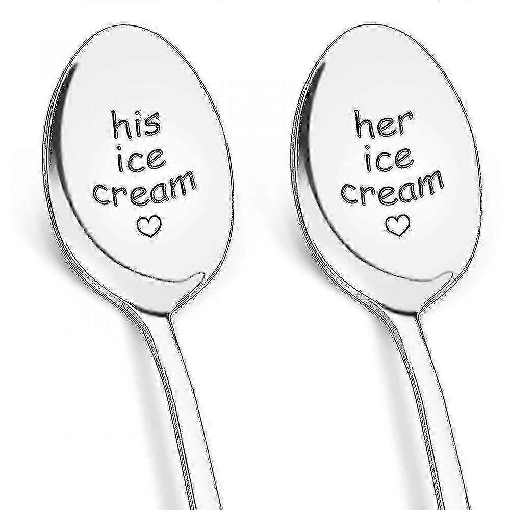 His And Hers Ice Cream Spoons Set-pack Of 2 Gifts For Couples Lovers,stainless Steel Engraved Coffee Spoon Present OGX