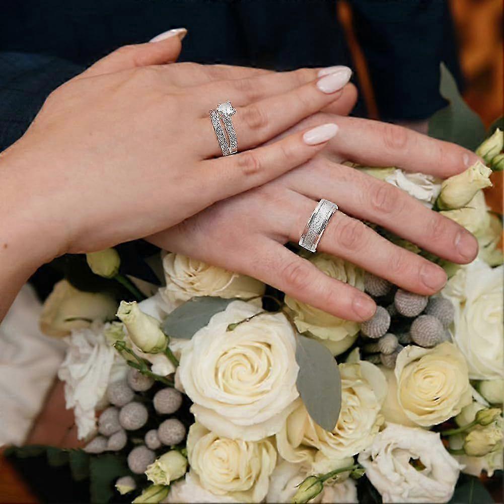 His And Hers Wedding Ring Sets Couples Matching Rings Women White And Blue Filled Heart CZ Wedding Engagement Ring Bridal Sets & Men's Tungsten Carbid