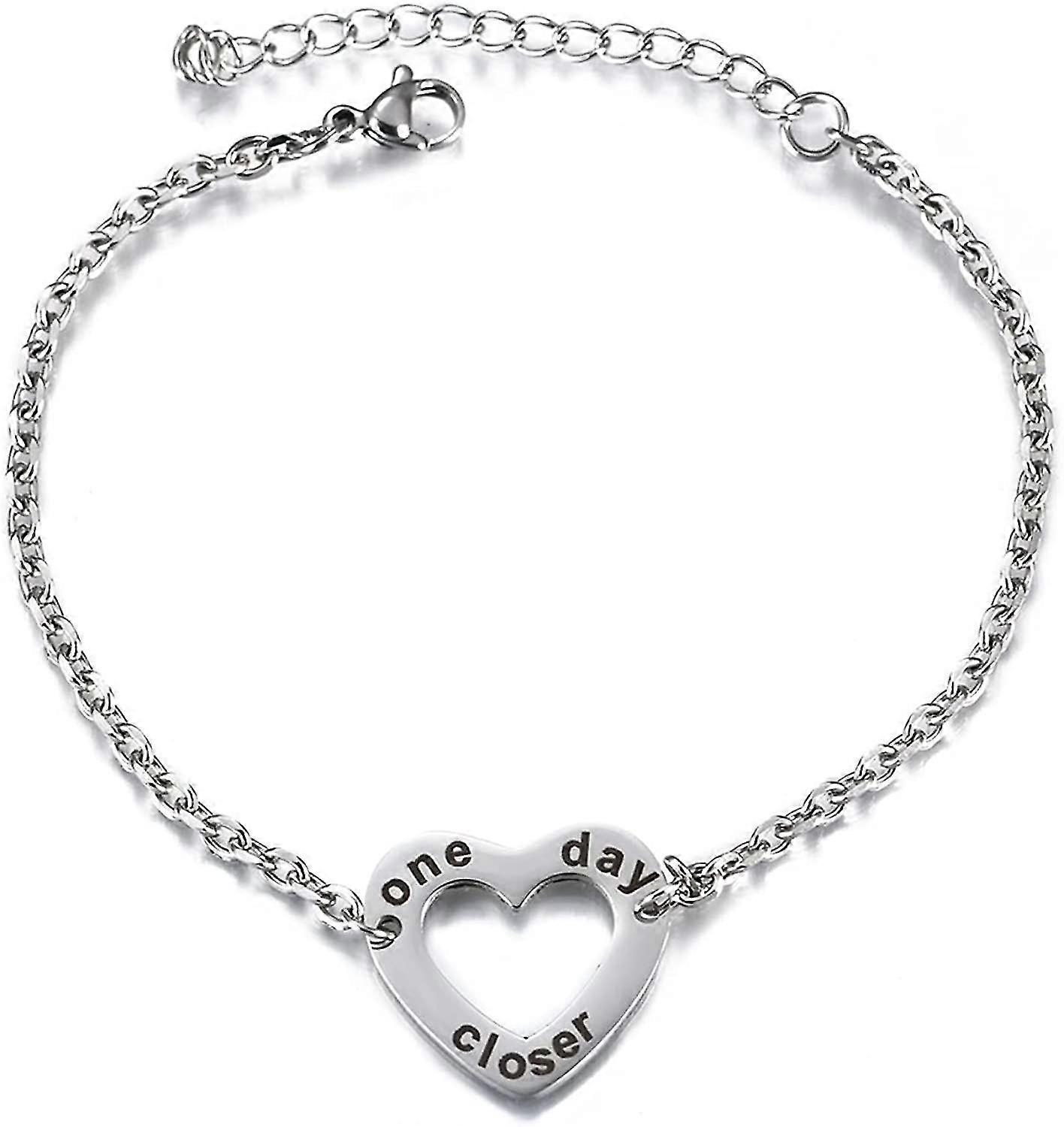 One Day Closer Bracelet Stainless Steel Long Distance Relationship Bracelets For Couples Deployment Gifts For Her And Him - -