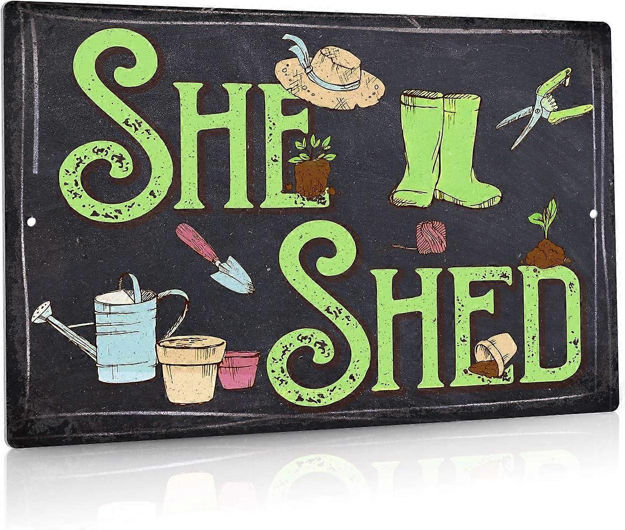 She Shed Decor, Farmhouse Wall Sign for Home, Kitchen, Garden, Women Cave, Gift for Girlfriend, Ladies, 12x8 Inches Aluminum Metal Sign - She Shed Rul