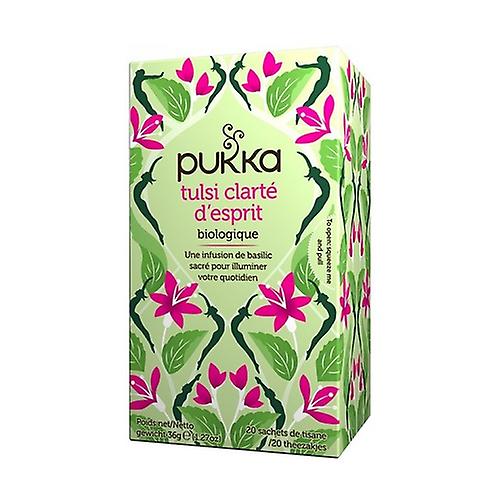 O Clarity of Mind Tulsi Infusion de Pukka (mistura floral, manjericão) é um produto de tulsi verde brilhante, tulsi roxo para revigorar o espírito e tulsi de limão com um toque levemente picante para inspiração. . A empresa Pukka oferece um número variado de chás e infusões para se refrescar, aumentar sua energia ou relaxar. Armazenar em local fresco e seco.