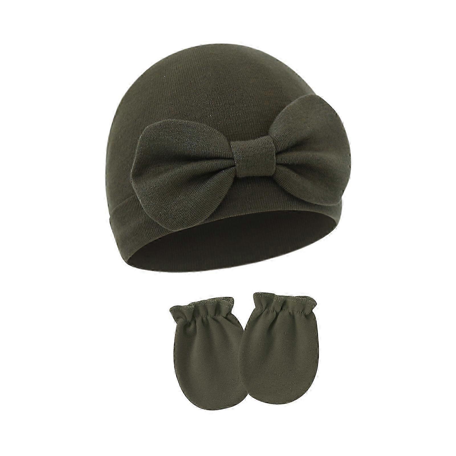 Comfortable Baby Bonnet Lovely Bowknot Decor Hospital Caps Bonnet with Anti-scratch Gloves for Infants 0-6 Months White Pink
