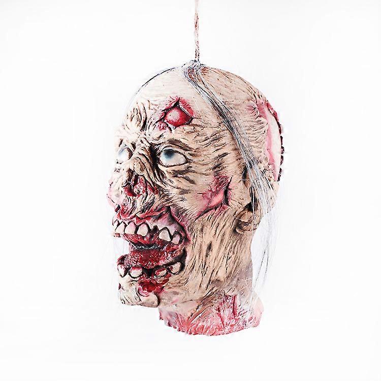 Scary Halloween Decoration Realistically Cut off Humanoid Rotten Face Zombie Head Pendant Halloween Scary Head Props Haunted House Decoration(1pcs)