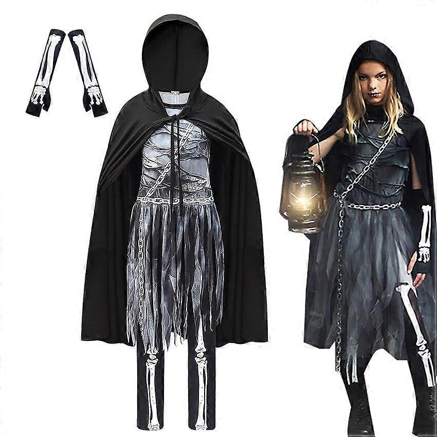 Scary Grim Reaper Costumes Cloak Skull Witch Draculaura One Piece Cosplay Anime Girl Medieval Dresses Halloween Costume For Kids