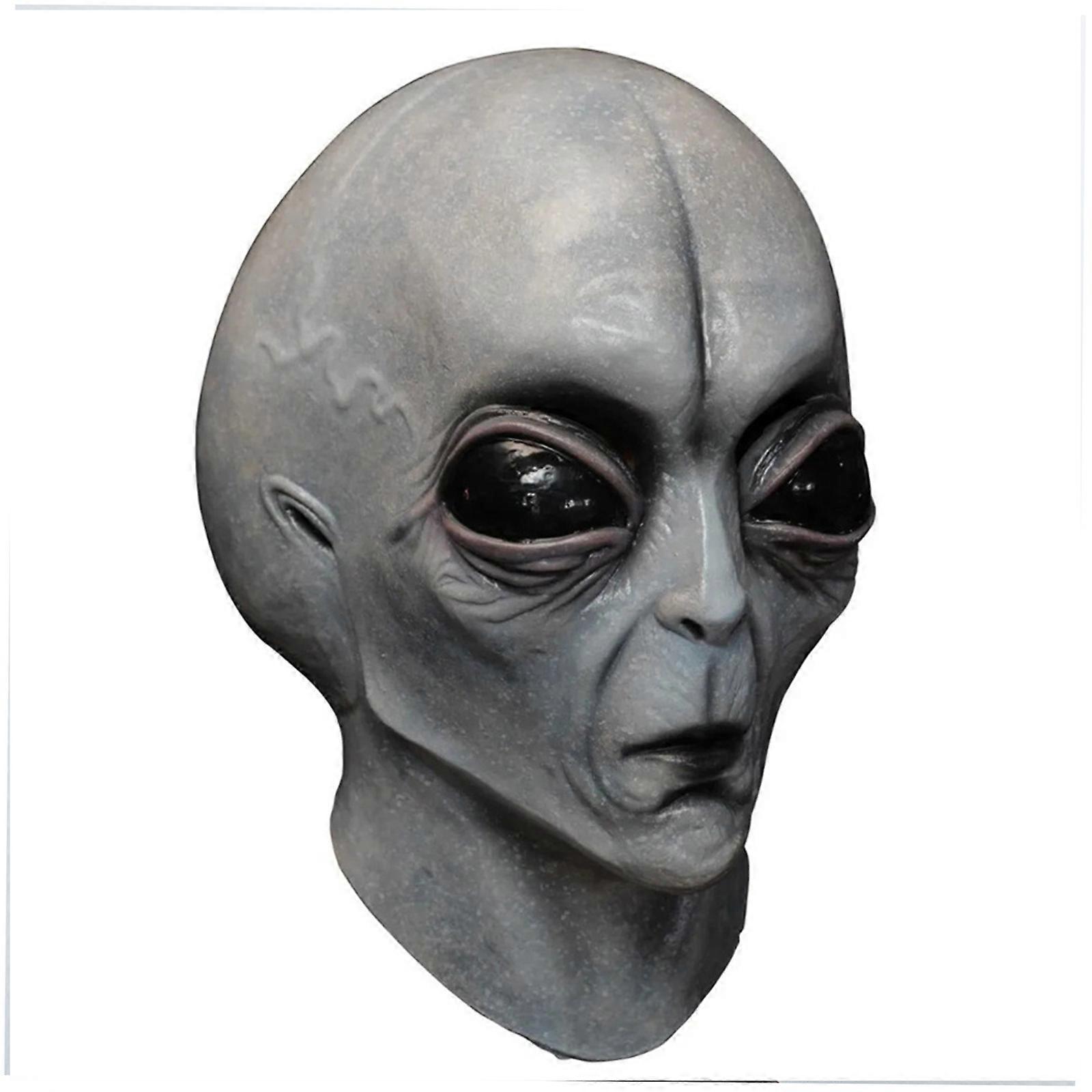 Scary ET Alien Mask Saucer Man Realistic Horror Masks Halloween Extra-terrestrial Horror Headgear UFO Props Masquerade Grey big eyed alien