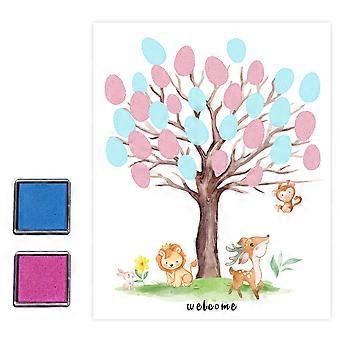 性別を明らかにするパーティー指紋ツリー、ピンクの象のテーマベビーシャワー速い