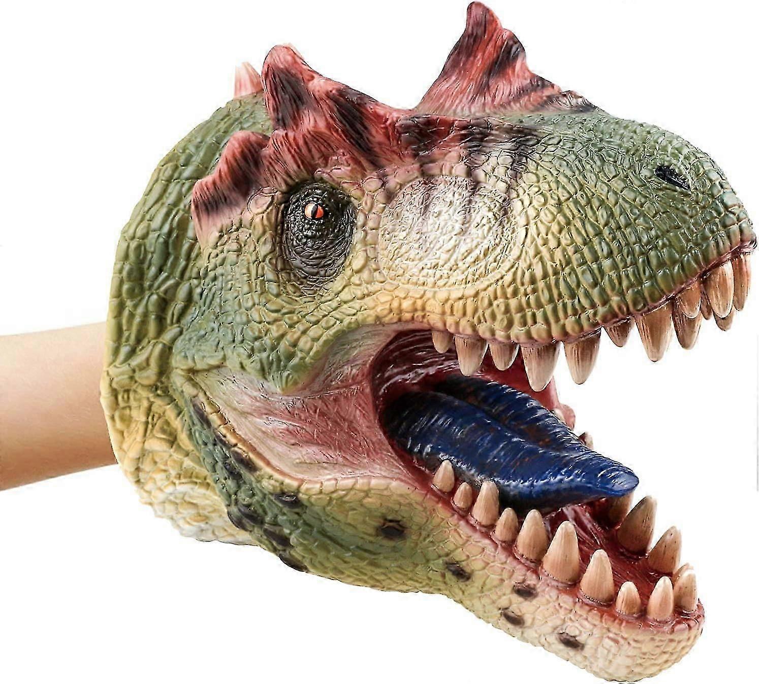 Dinosaur Hand Puppets Scary Toys Soft Rubber Animal Head Puppets Swimming Pool Beach Bathing Role Play Toys for Kids 3-12 Years Old (Green Allosaurus)