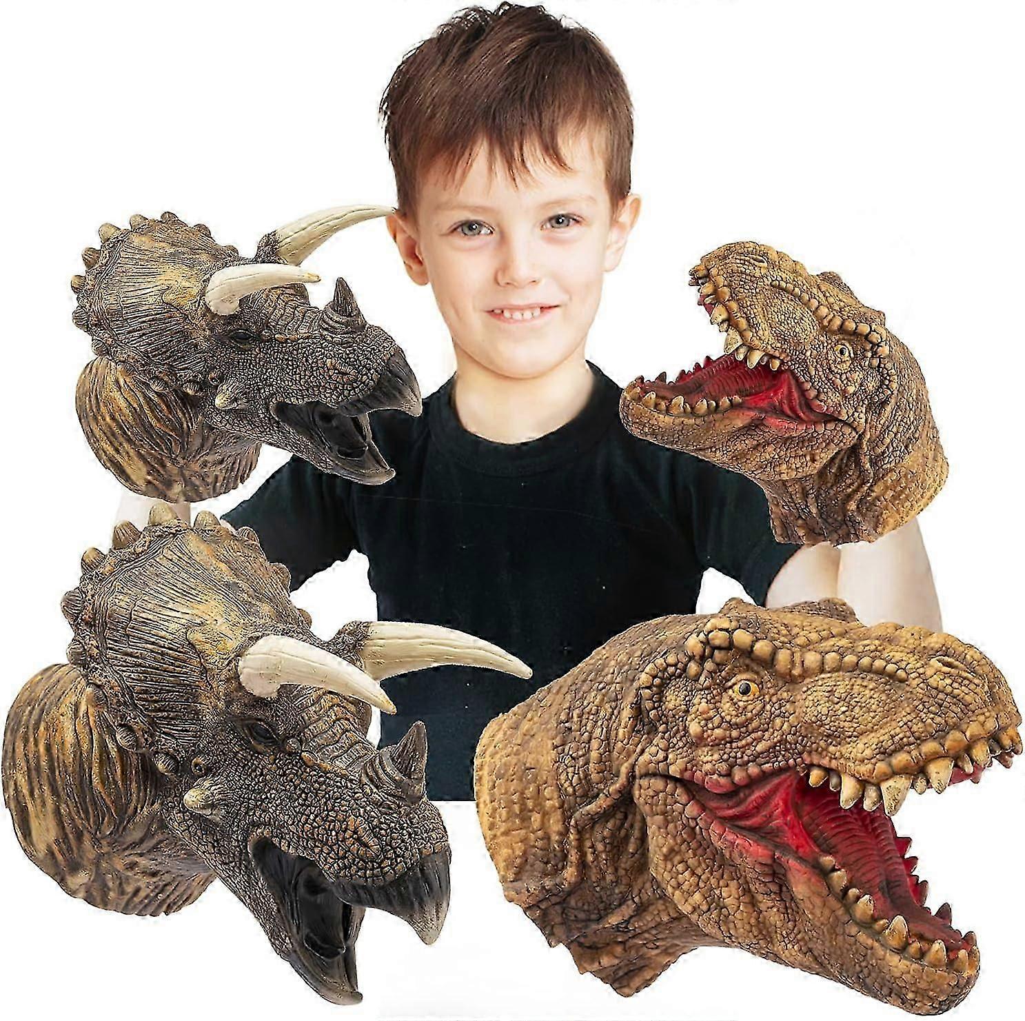 Dinosaur Hand Puppets Realistic Latex Soft Animal Head Toys Set, Hand Puppet Toys Gift compatible Kids (Tyrannosaurus & Triceratops)_Special Gift