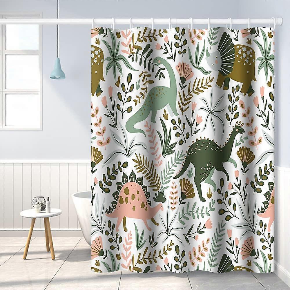Pack of Dinosaur Themed Green Dino Tropical Leaves Fabric Polyester Shower Curtain for Kids Bathtub Decorative 72'W x 78'L