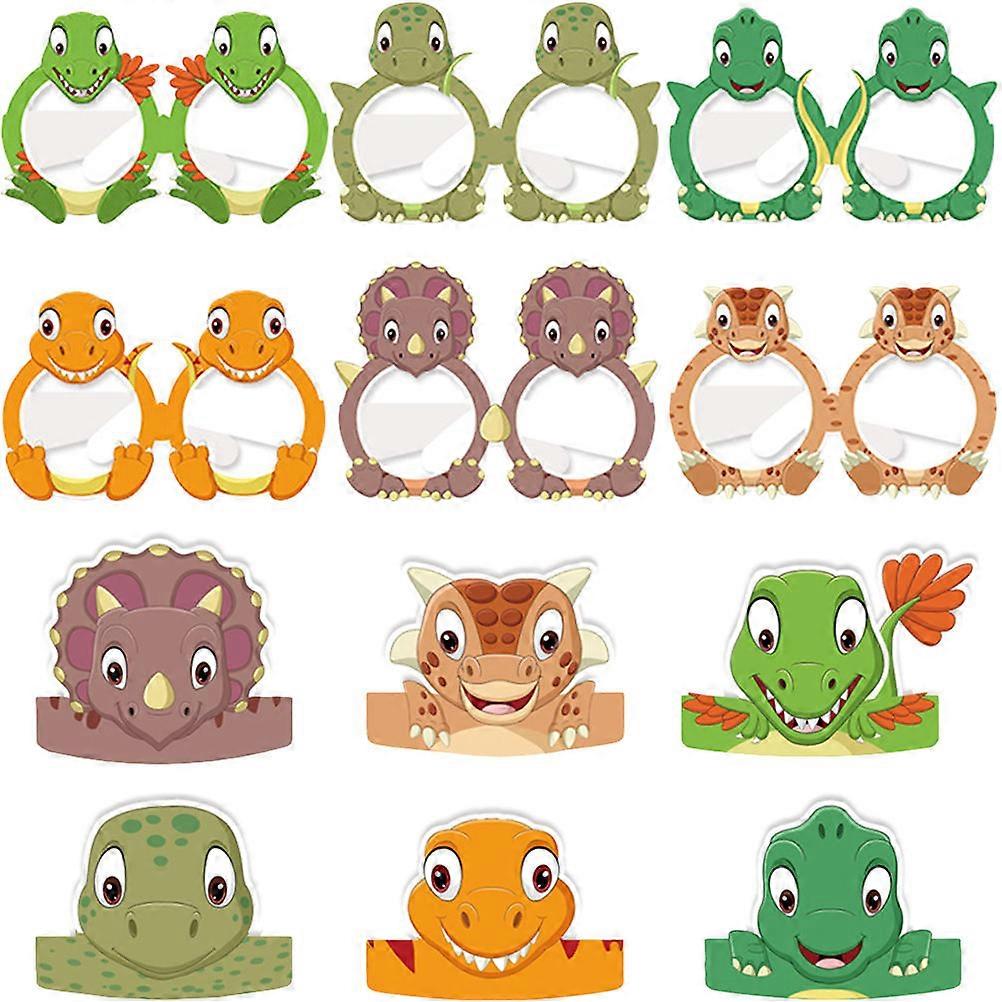 Dinosaur Design Party Decoration Hats For Kids Birthday Parties Carnival Style Adjustable Knot 6Hats 6Glasses