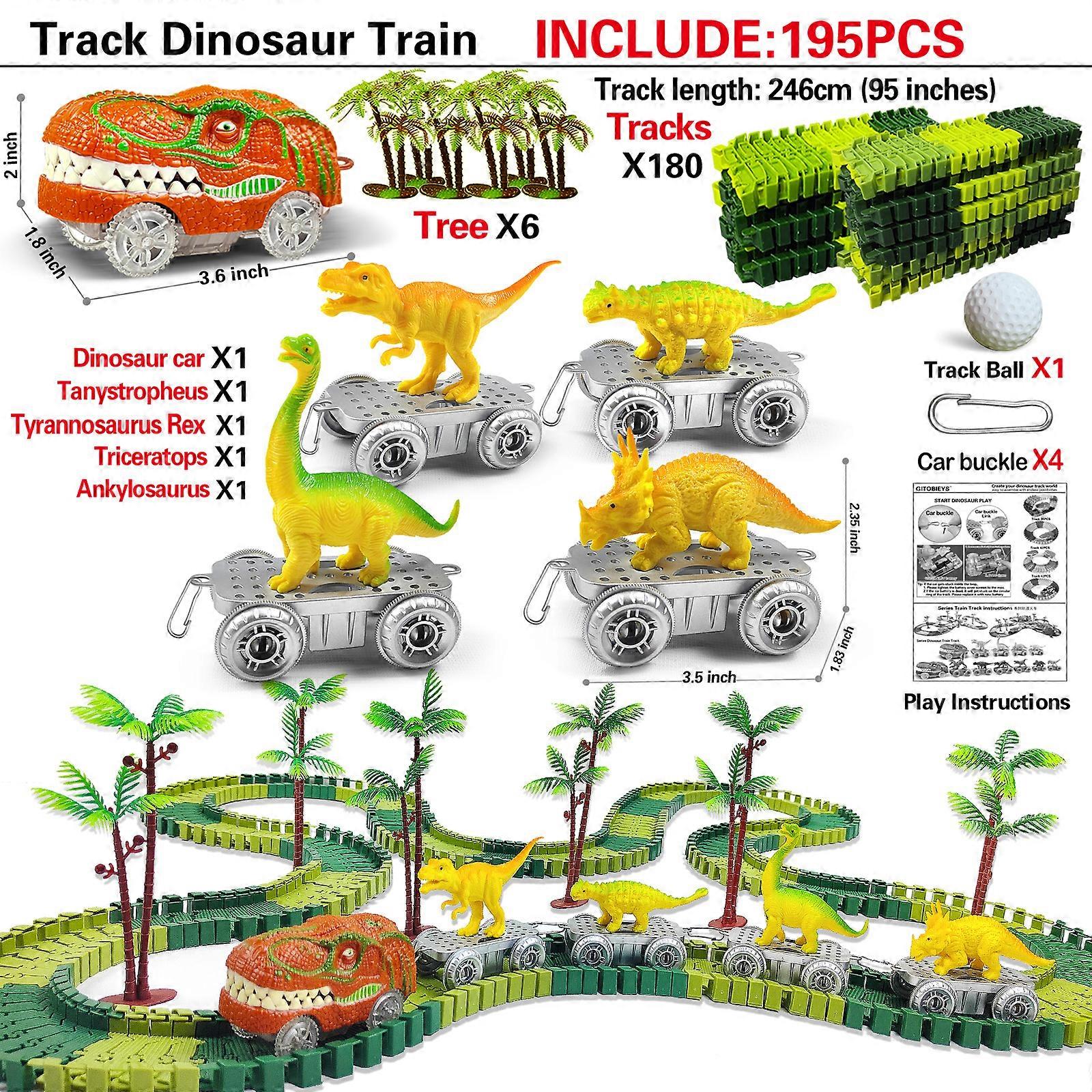 Dinosaur Train Toys Create A Dinosaur World Road Race-Flexible Track Playset ,Dinosaurs Toys Race Car for Old boy Girls
