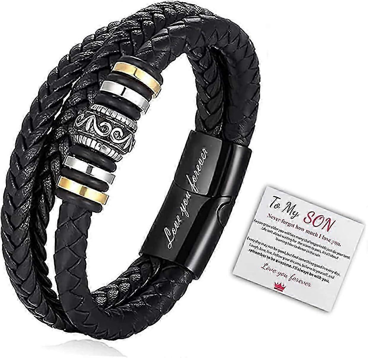 Leather Bracelet for Son,Multi-Layer Braided Leather Bracelet, Men's Leather Bracelet,To My Son Love You Forever Leather Bracelet,Men's knitting