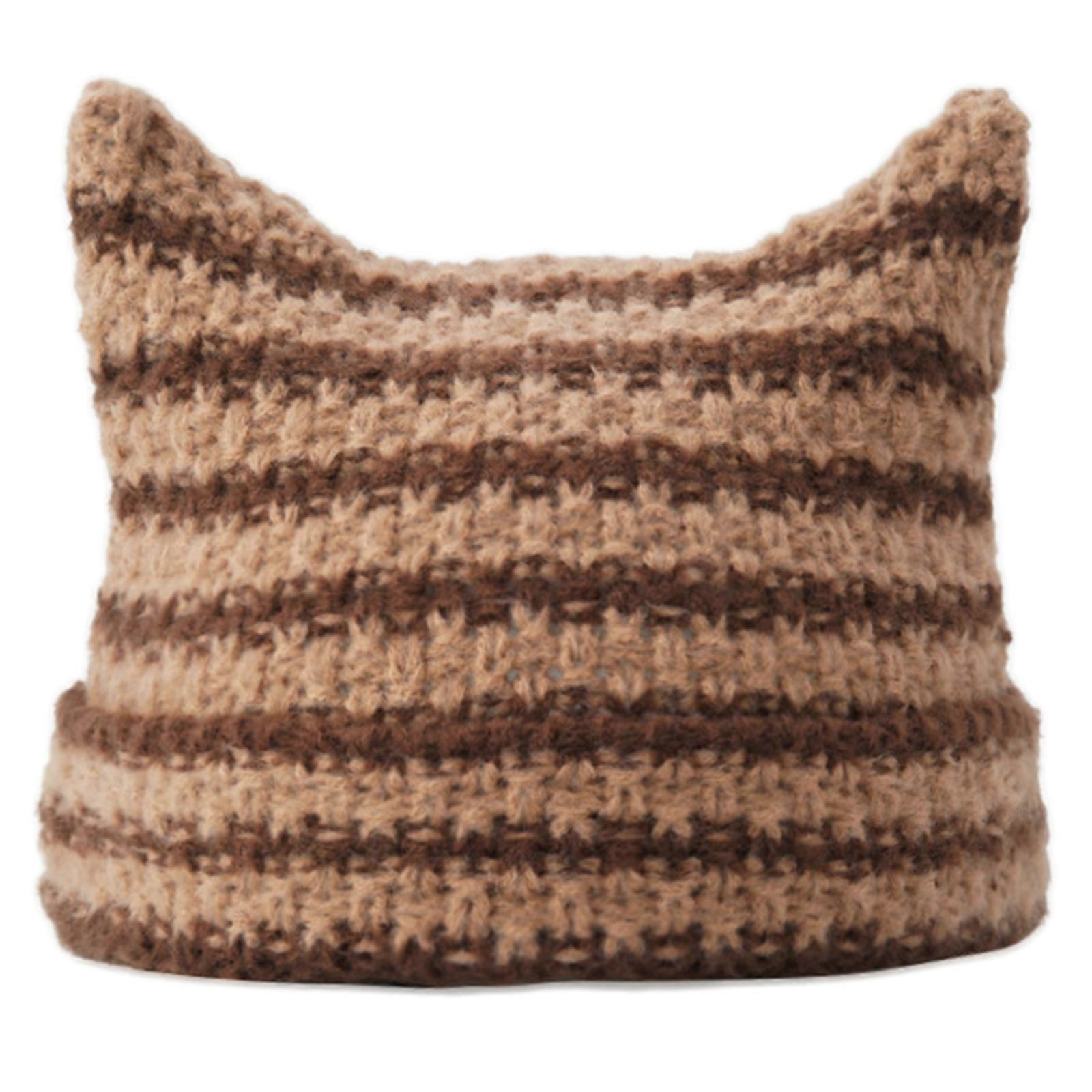 Devil Horn Hat Crochet Beanie Striped Knit Hat Little Devil Hat Crochet Knitted Hat Skullies Beanie Cat Ear Beanie coffee stripes
