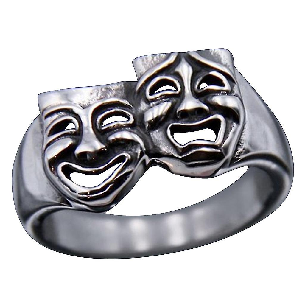Tragedy Comedy Theater Mask Ring Smile Cry Face Wide Statement Ring Jewelry Fashion Stackable Finger Ring Bands