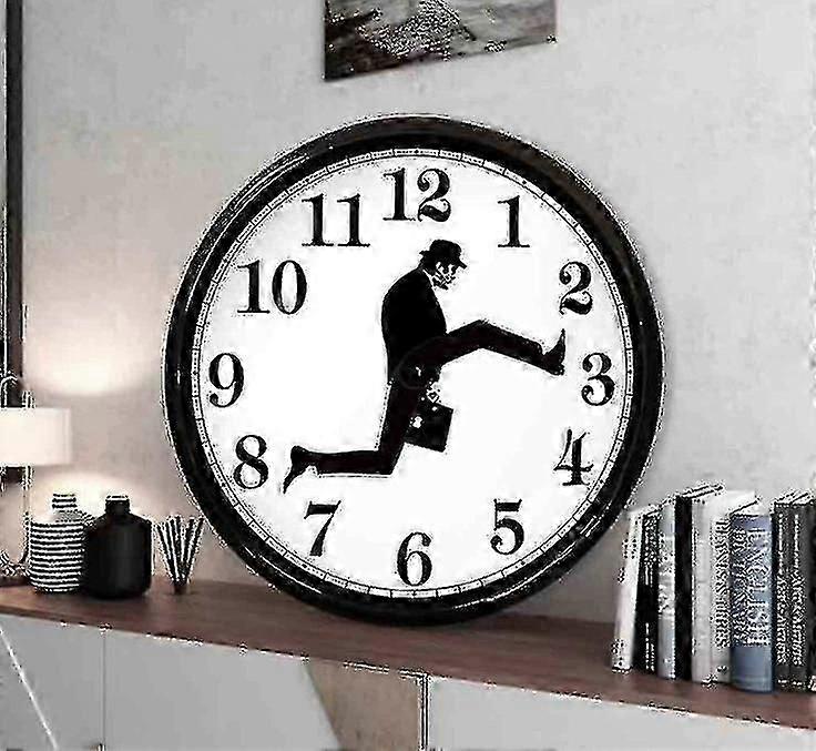 Silent Wall Clock with Silly Walk Design, Wall Art Decor for Living Room, Black and White, 1pc