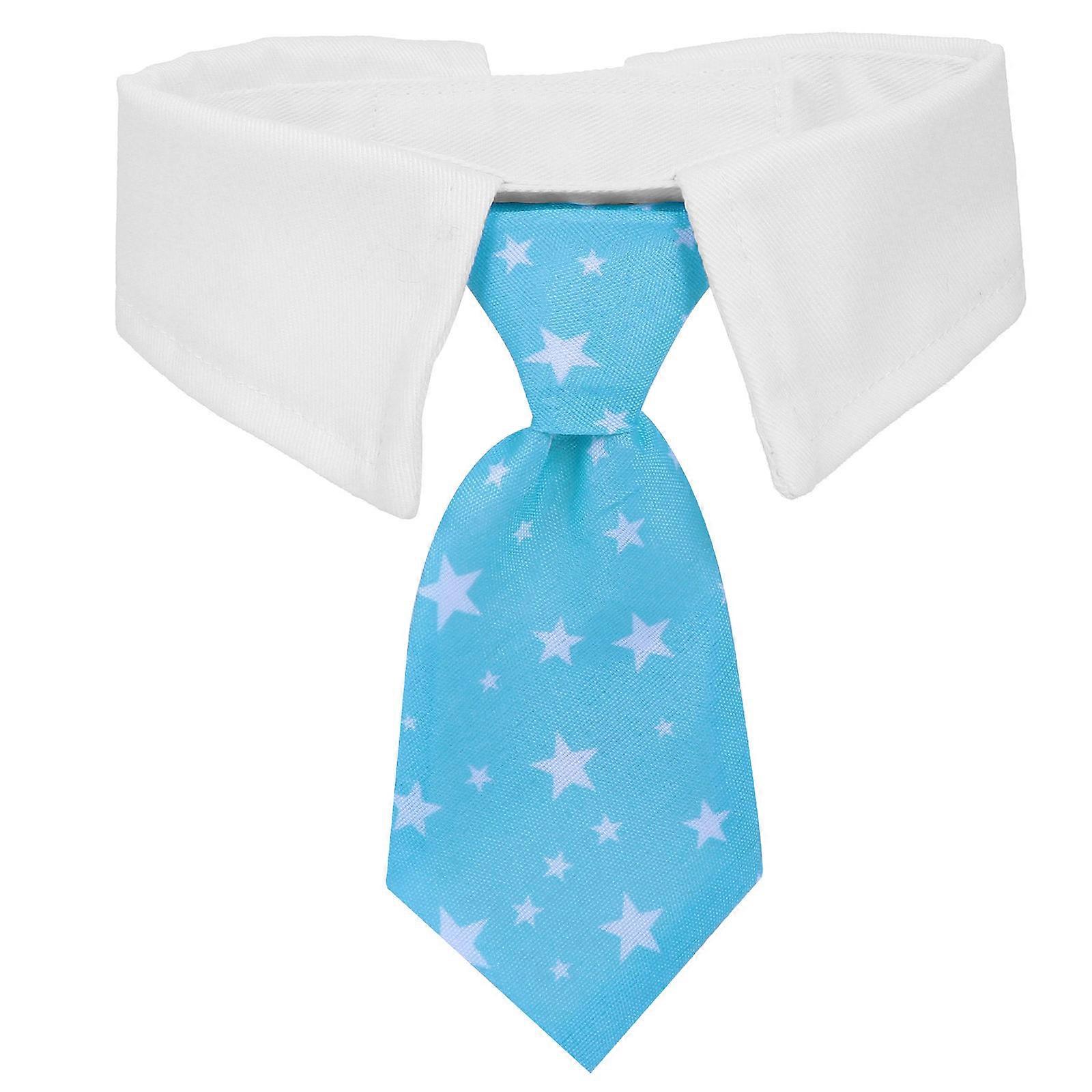 Adorable Star Pattern Pet Neck Tie for Dogs Blue Polyester Cotton Formal Wear Festival Costume Accessory 2.7cm x 12.5cm