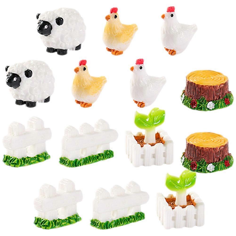 Adorable Miniature Poultry Ornament Set for Decor Creative Resin Animals for Mini Garden 14pcs