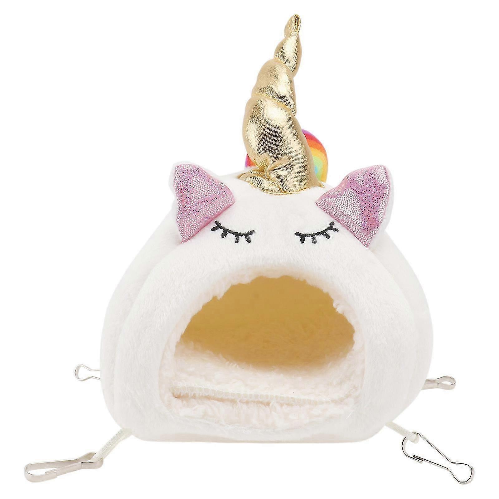 Adorable Unicorn Pet Sleep Cage Winter Warm Pet Bed for Hamster Rabbit Squirrel (White, Size S)