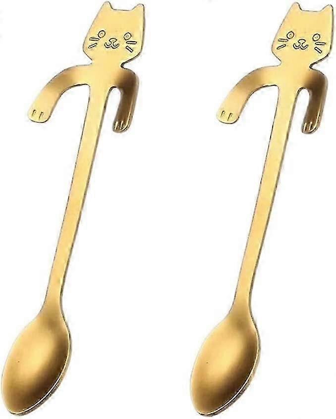 Adorable Cat-Themed Coffee and Tea Spoons, Set of 4 Stainless Steel (Golden Color)