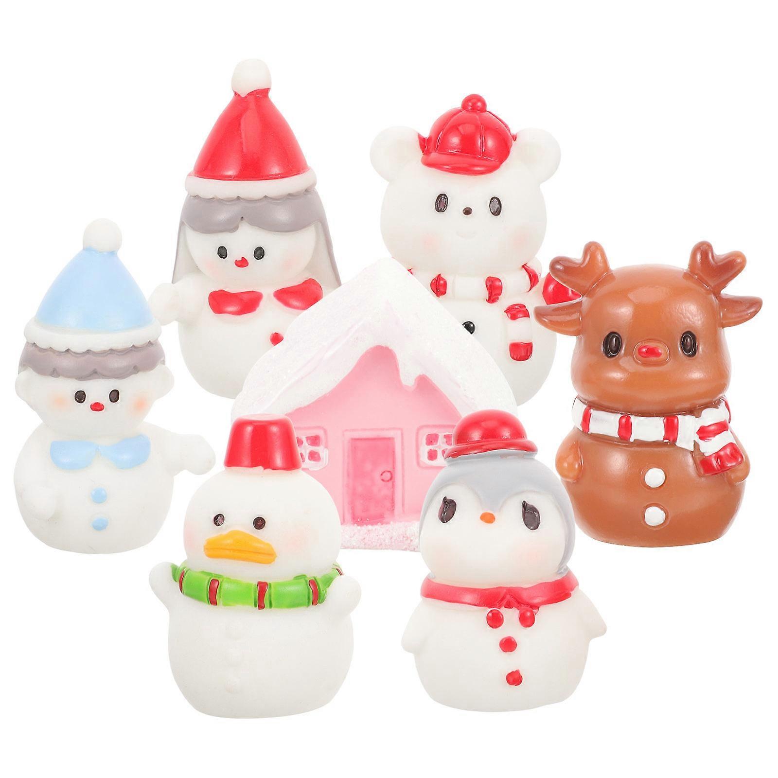 7Pcs Christmas Themed Miniature Decorations For Giving Adorable Snowman Penguin And In Assorted Colors