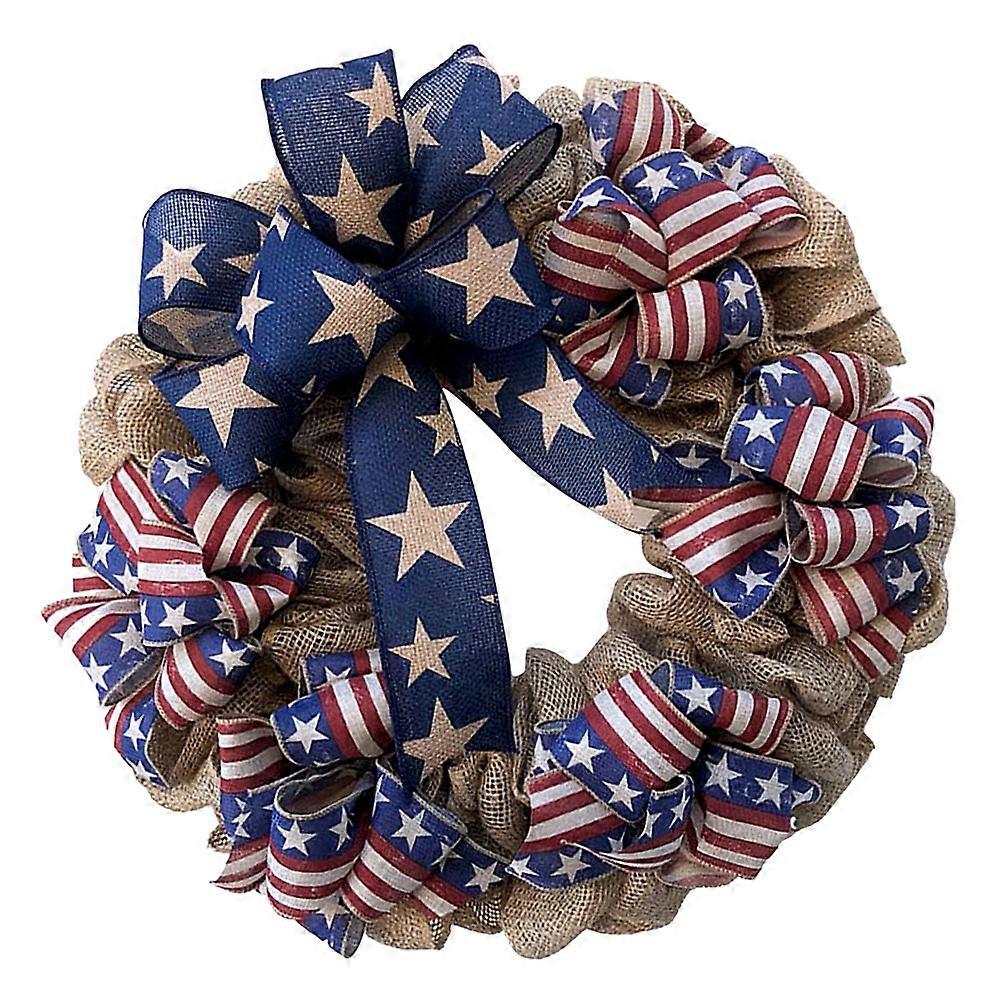 Patriotic Outdoor Decor Independence Day Garland Round Shape Hanging Sign For Festive Occasions 11.8X11.8in 1Pack