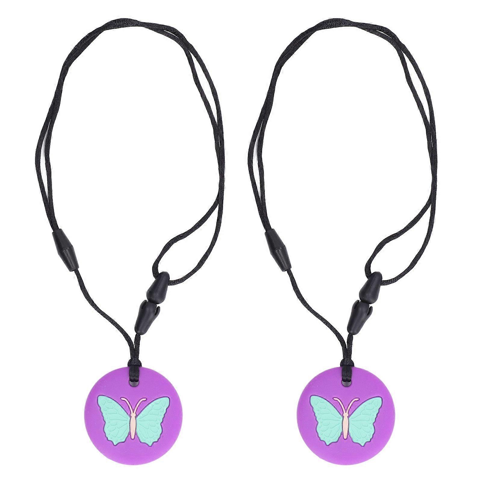 2Pcs Sensory Chew Necklace Safe Silicone Discomfort Relief Proper Hardness Baby Teething Necklace for Toddler Kids Purple