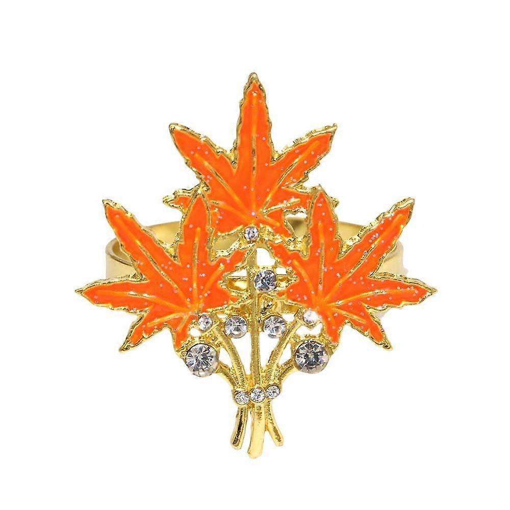 6pcs Maple Leaf Napkin Rings For Thanksgiving Dinner Decorative Metal Buckles With Rhinestones Festive Table Decor For Holiday Parties And Formal Even