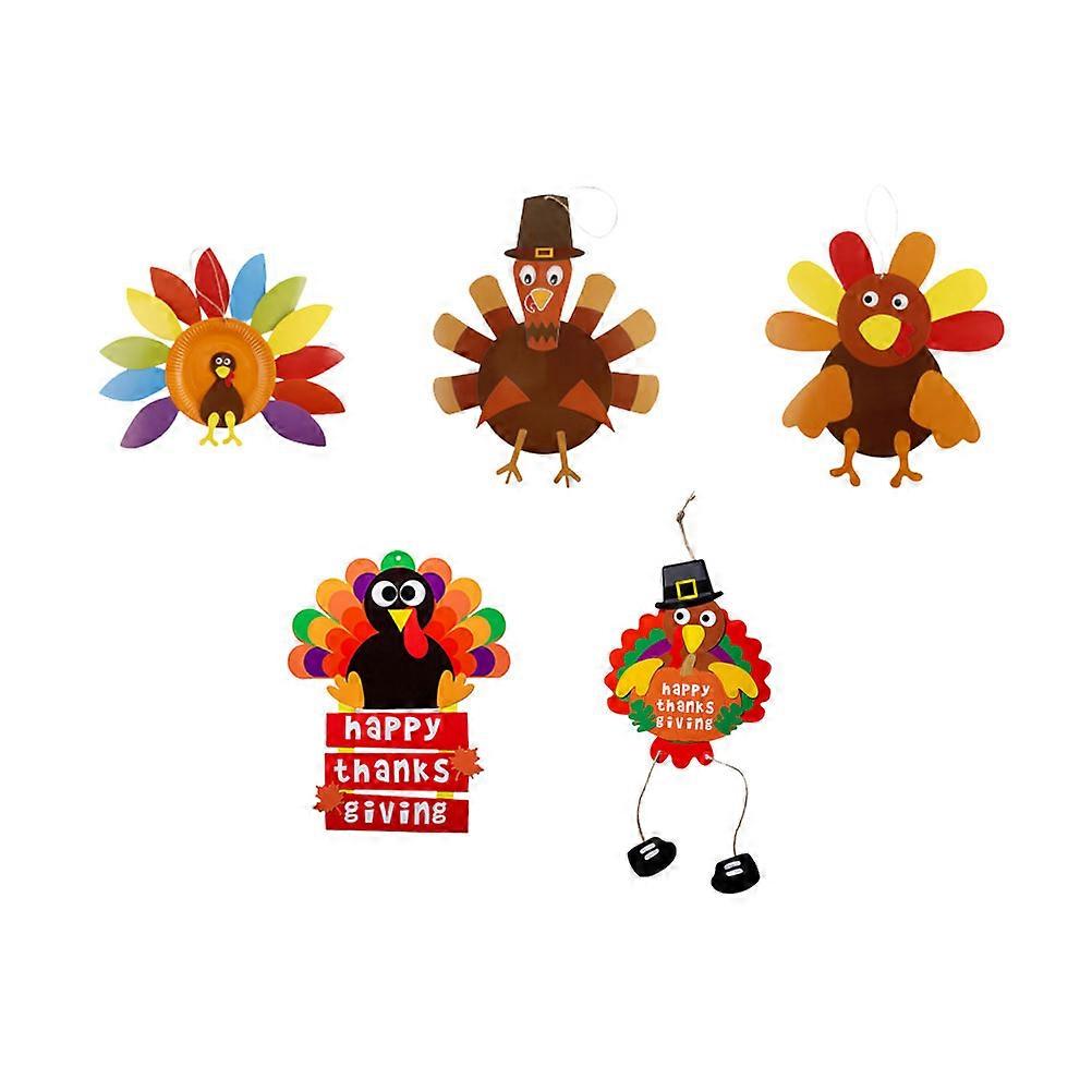 Thanksgiving Hanging Flag Turkey Pendant Set for DIY Craft 5Pcs Assorted Color Decorations