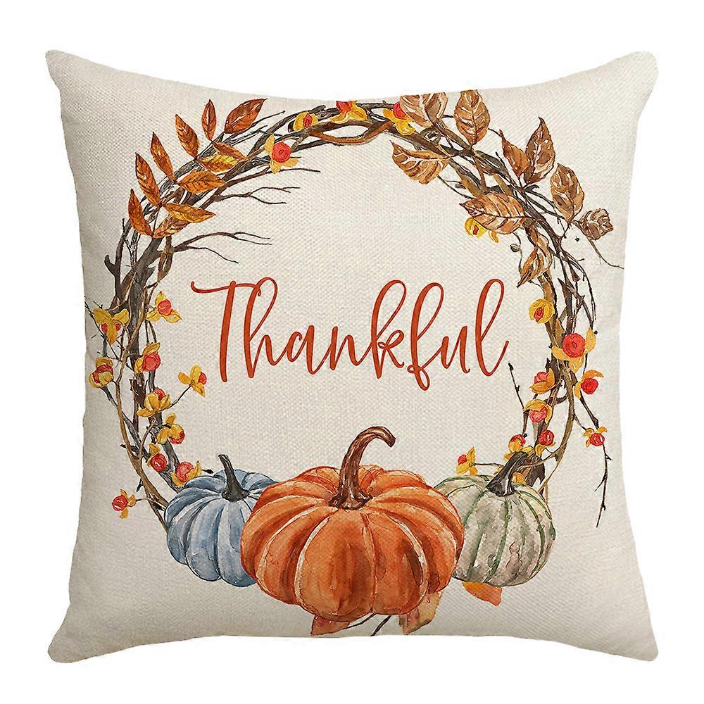 Thanksgiving Pillow Autumn Pumpkin Maple Leaf Orange Wreath Farm Decor Sofa Pillow Cover Wholesale