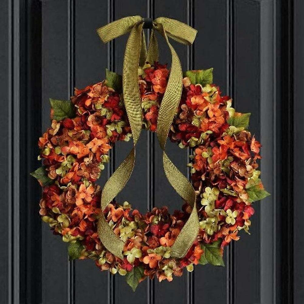 Thanksgiving Wreath Fall Hydrangea Bowknot Decoration Flower Garland Wreath Thanksgiving Front Door Home Decor