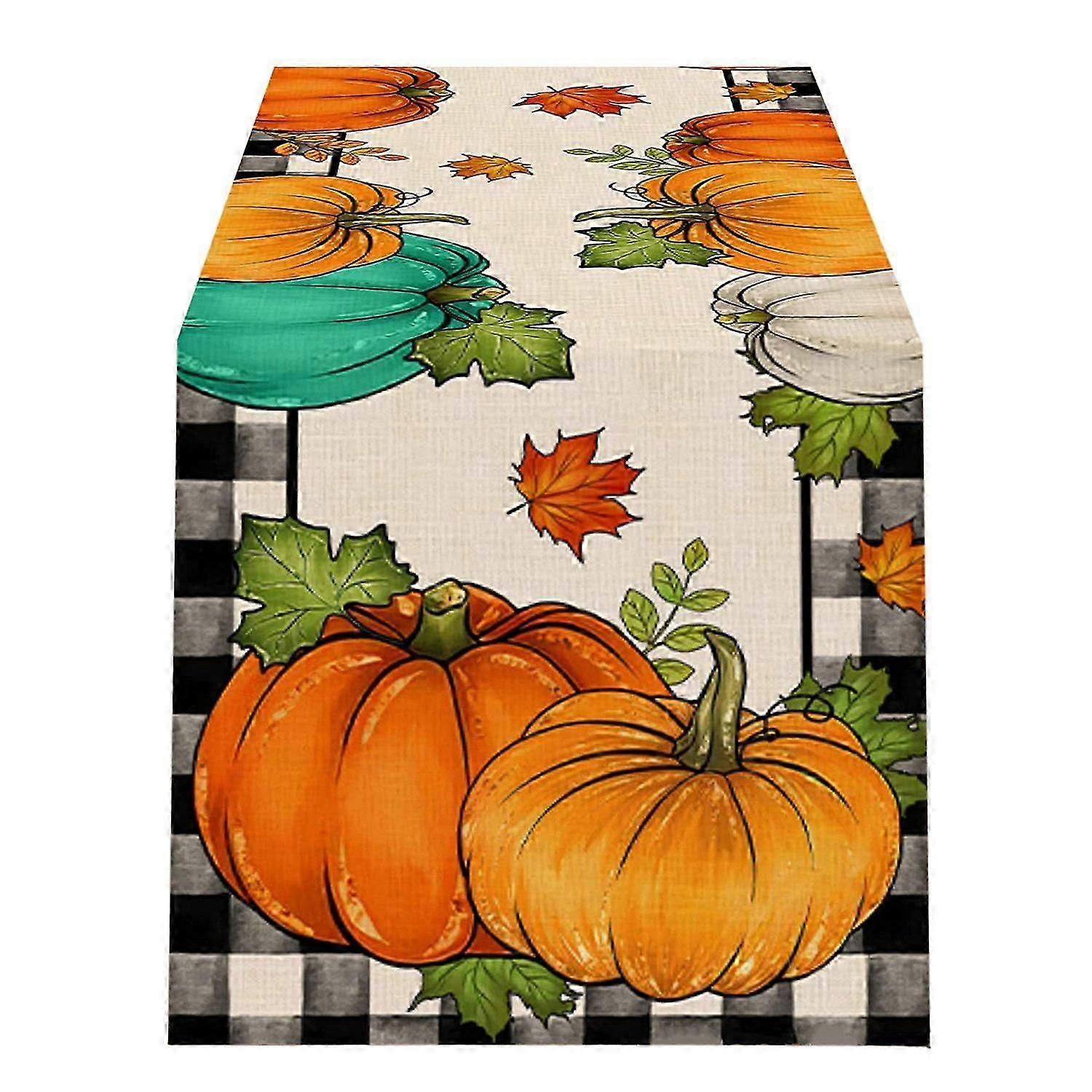 Thanksgiving Party Table Runner Pumpkin Sunflower Print Stain-Proof Reusable Table Protection