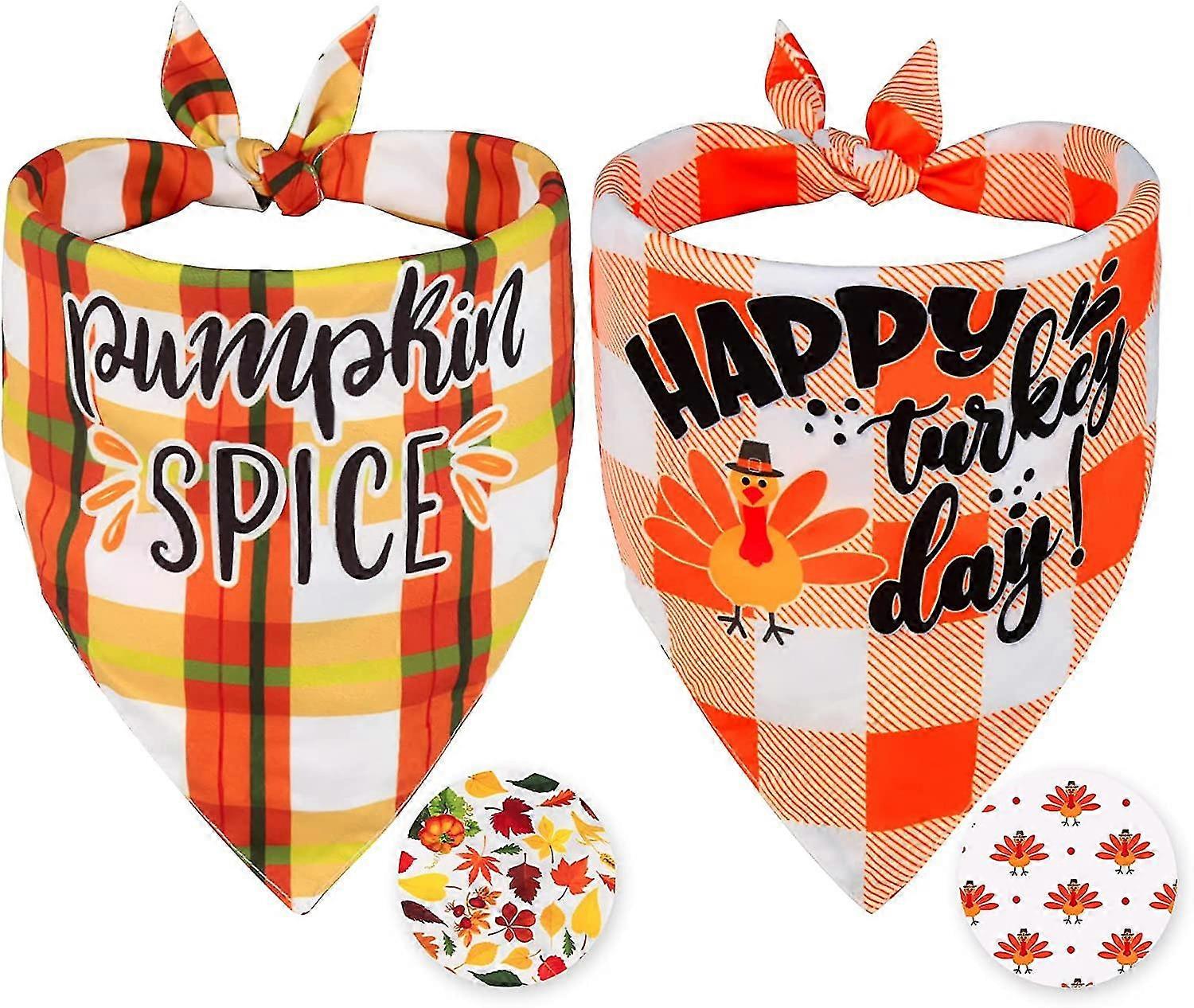 Thanksgiving Dog Bandanas 2 Pack, Reversible Thanksgiving Bandana For Dogs, Dog Gift