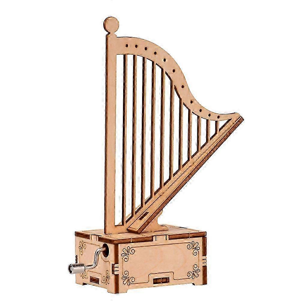 Handwork Music Box Harp Shape Music Box Wooden Music Box Assembled Muic Box for Kids