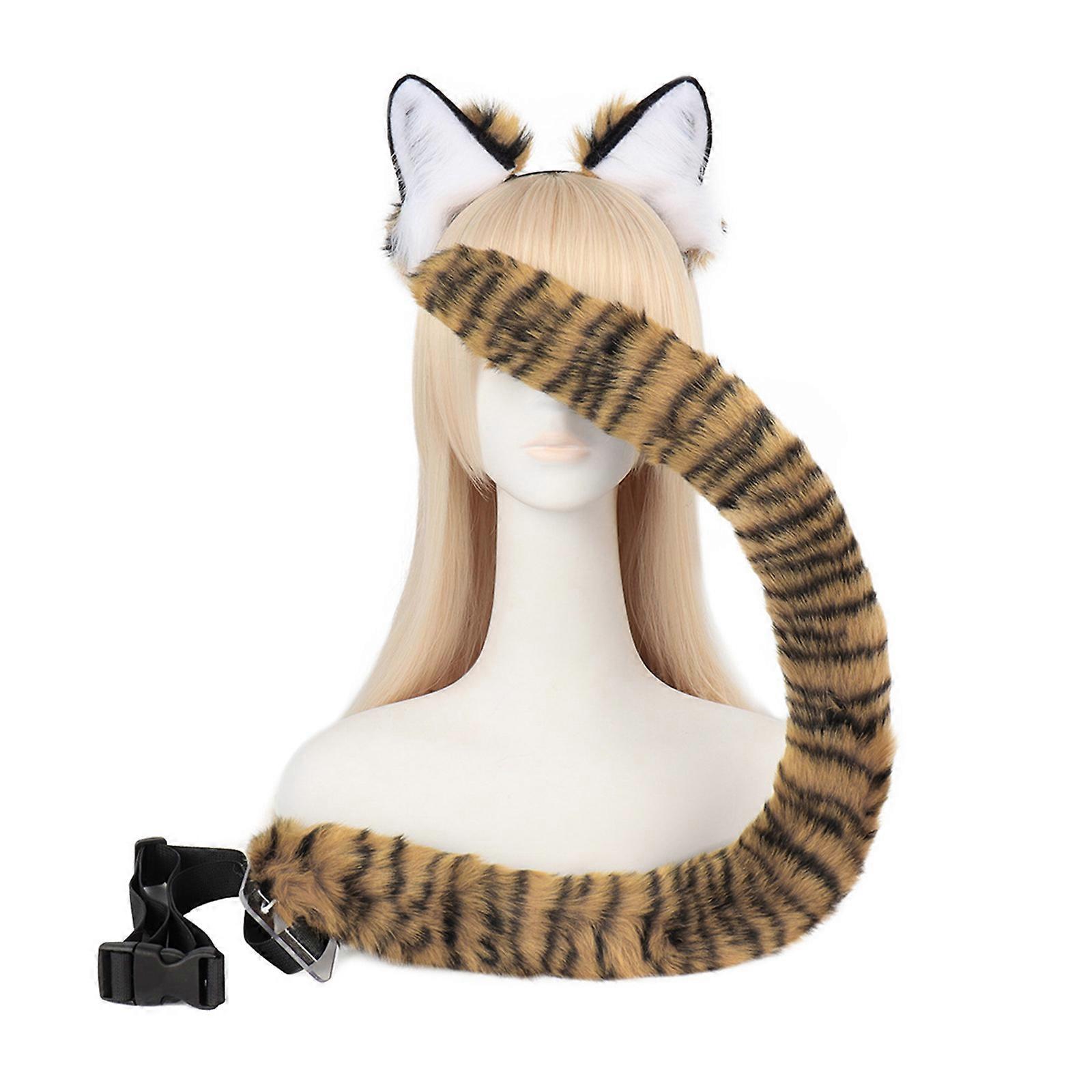 Handmade Plush Foxes Tigeres Ear Headband and Faux Furs Tail for Halloween Cosplay Party Costumes Accessories Kid Adult