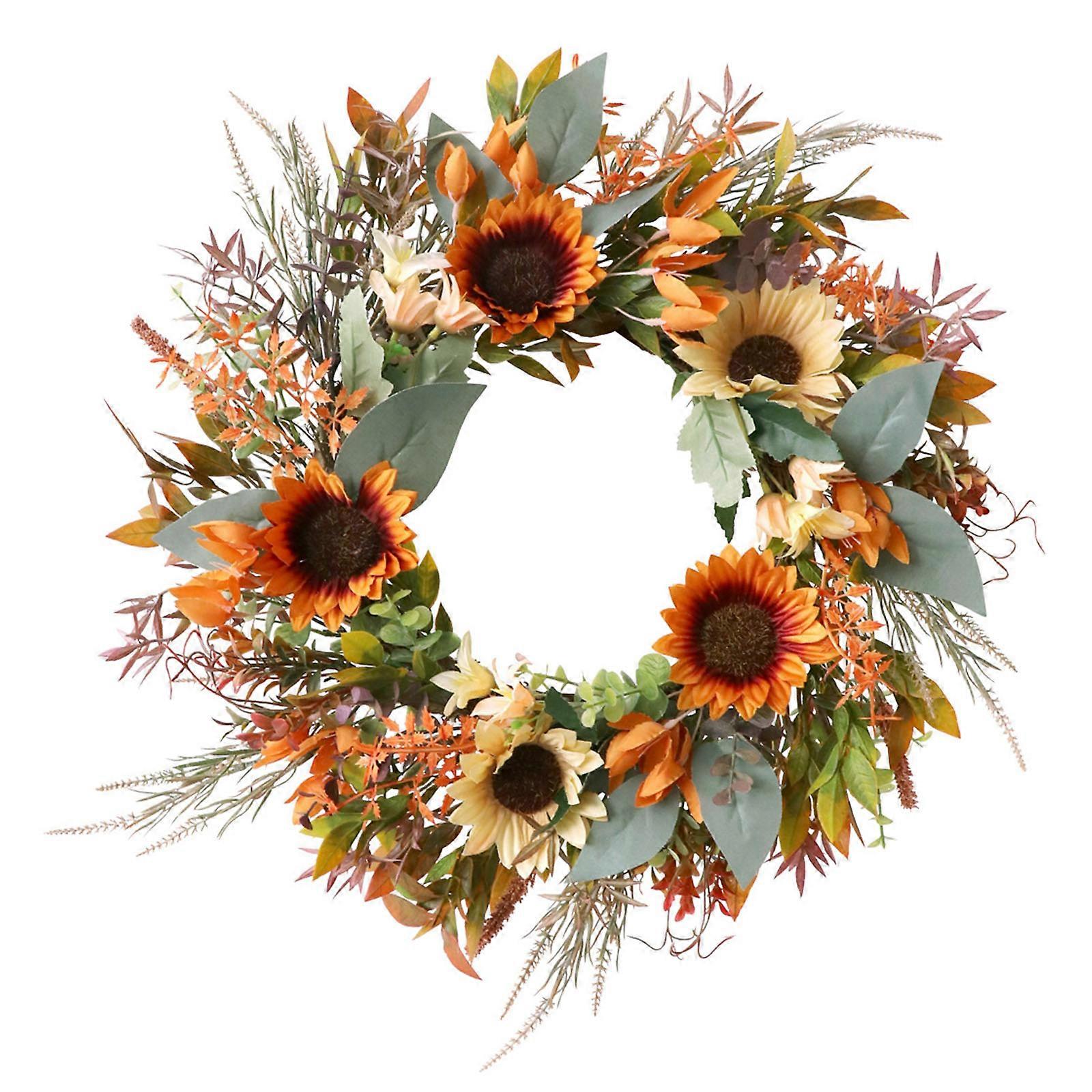 Handmade Sunflowers Wreath 50cm Decorative Garlands for Door and Window Display Thanksgiving Day Home Decoration