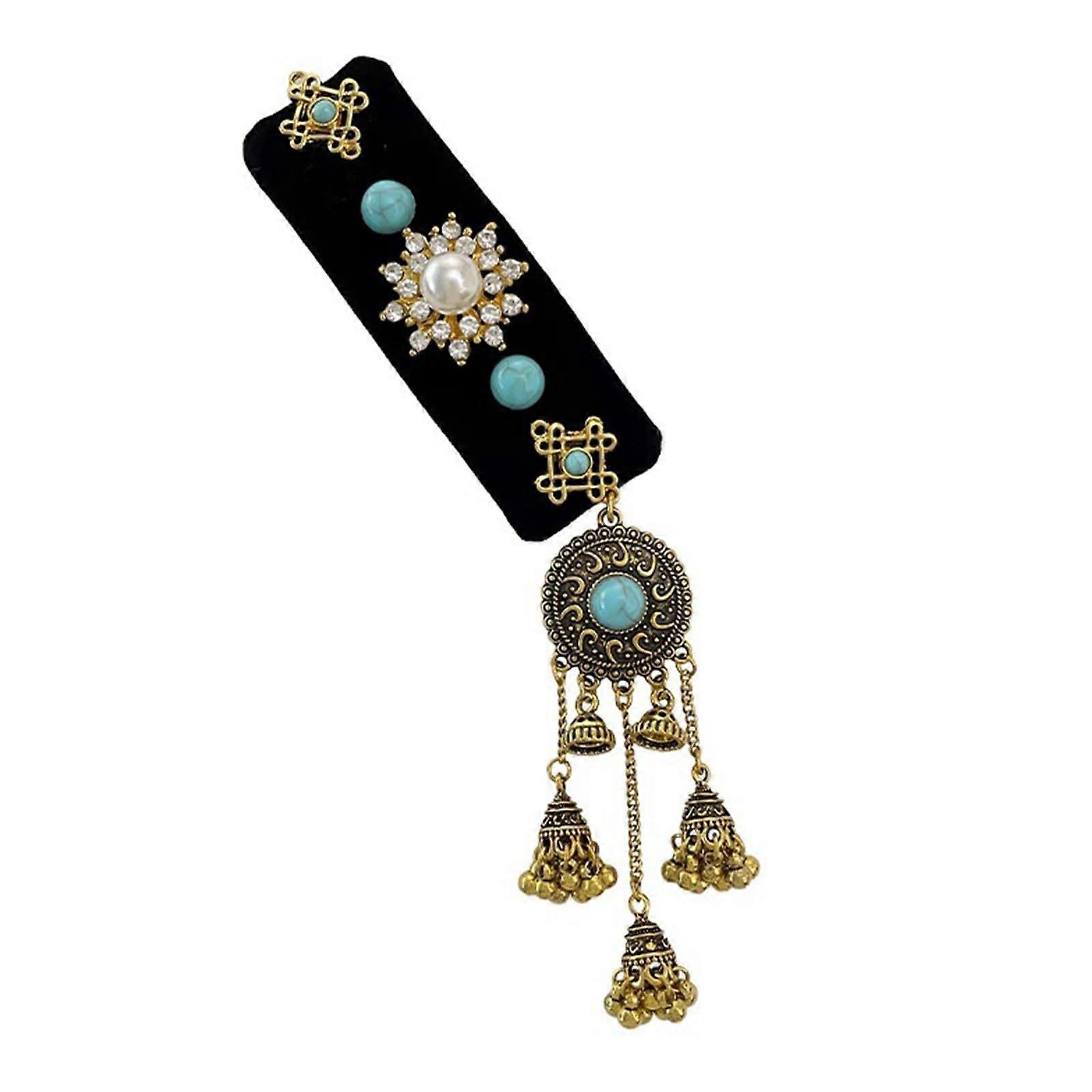 Handmade Vintage Black Velvet Hairpin with Turquoise Tassels Ethnic Hair Clip Accessories for Unique Fashion Lovers