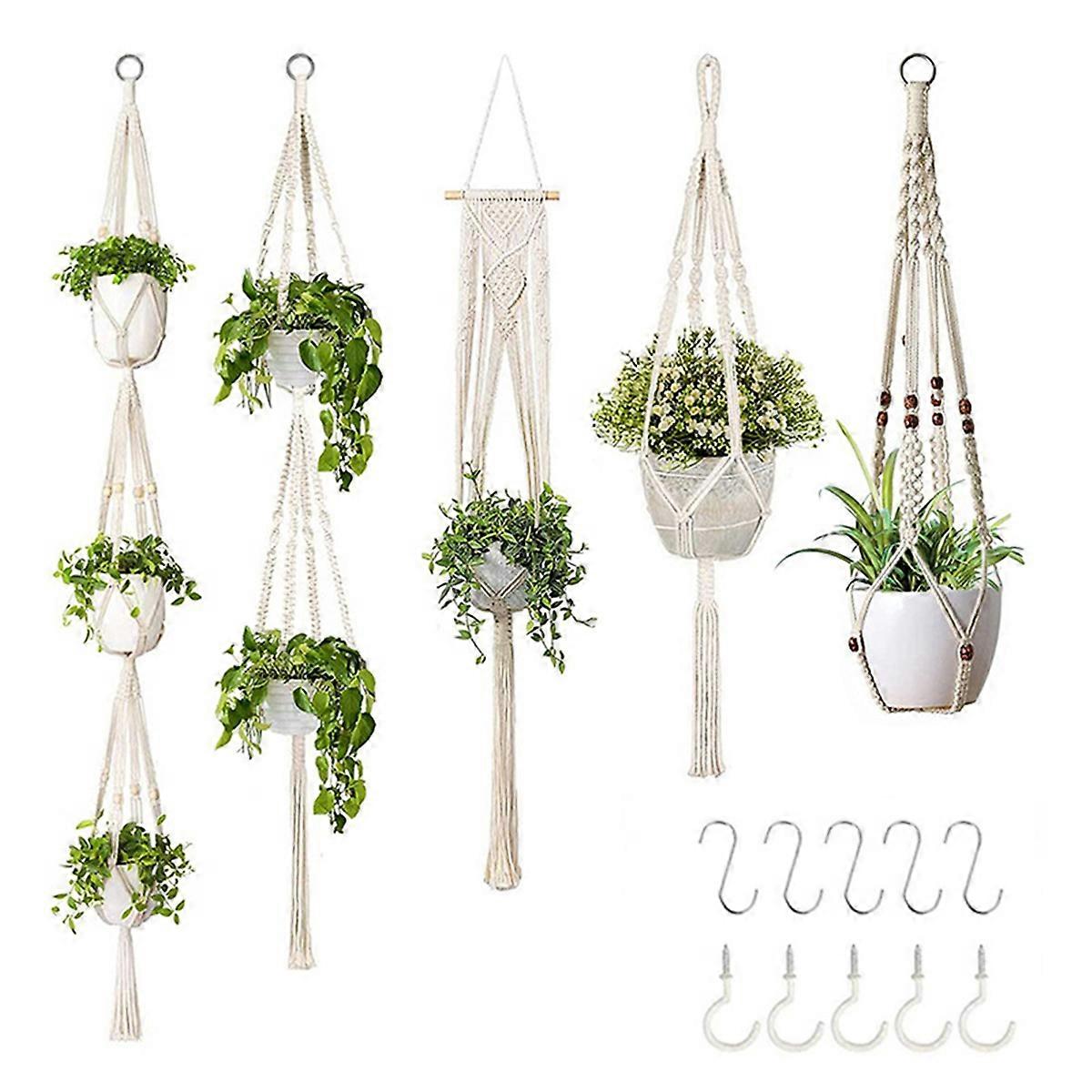 Hand-Made Flower Stand, Adjustable Knotting Rope, Woven Hanging Basket, with Flowerpot Tray, Used i