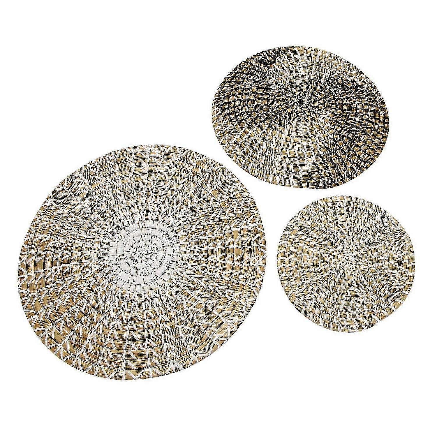 Handmade Hanging Wall Basket Decor( 3)round Woven Basket , Decor Trays For Bedroom,kitchen,living Ro