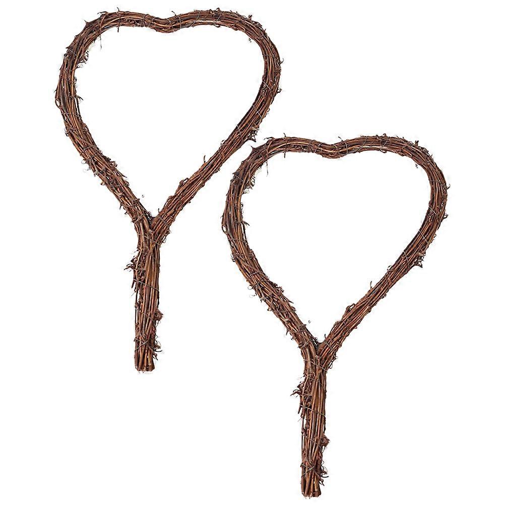 2Pcs Decorative Heart Rattan Wreath For Handmade Crafts Light Brown Floral Arrangement