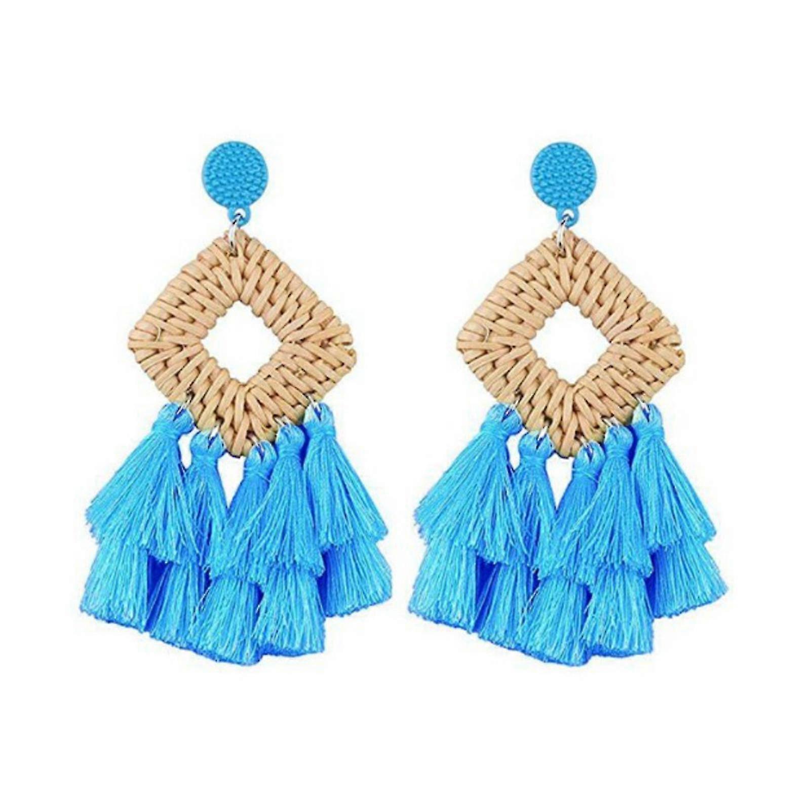 Handcrafted Geometric Rattan Earring Stylish Elegant Tassel Earring For Party Birthday Gift